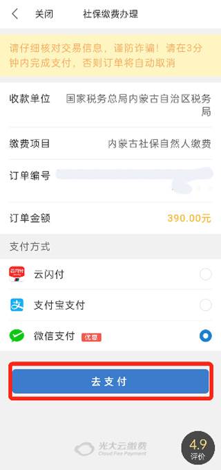 第五步:选择付款方式,支付成功后即可完成社保缴费。
