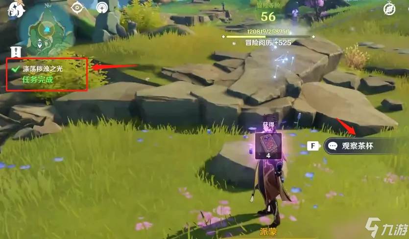 8、对话完成之后我们会看到只留下了茶杯在石块上面。任务完成。