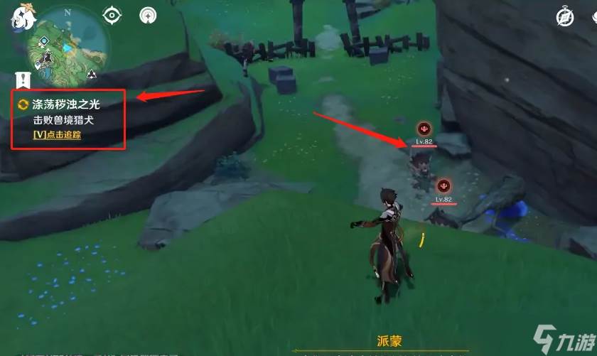 3、在这里我们会自动刷新接取到[涤荡秽浊之光]任务,将眼前的兽境猎犬击败。
