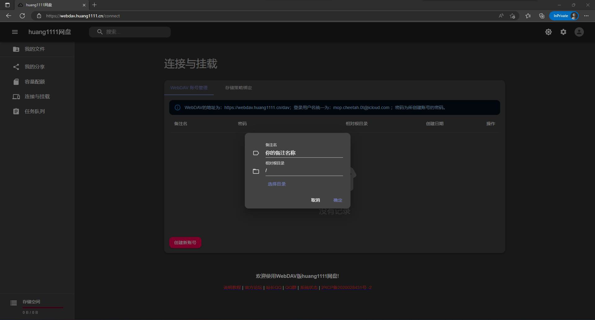地址(如前方没有需要你填写协议,请在此处添加https://):webdav.huang1111.cn