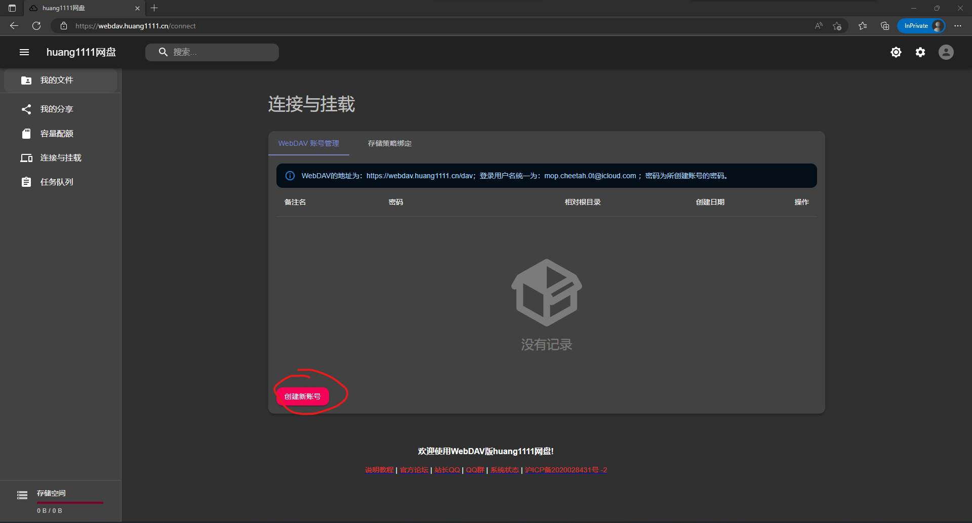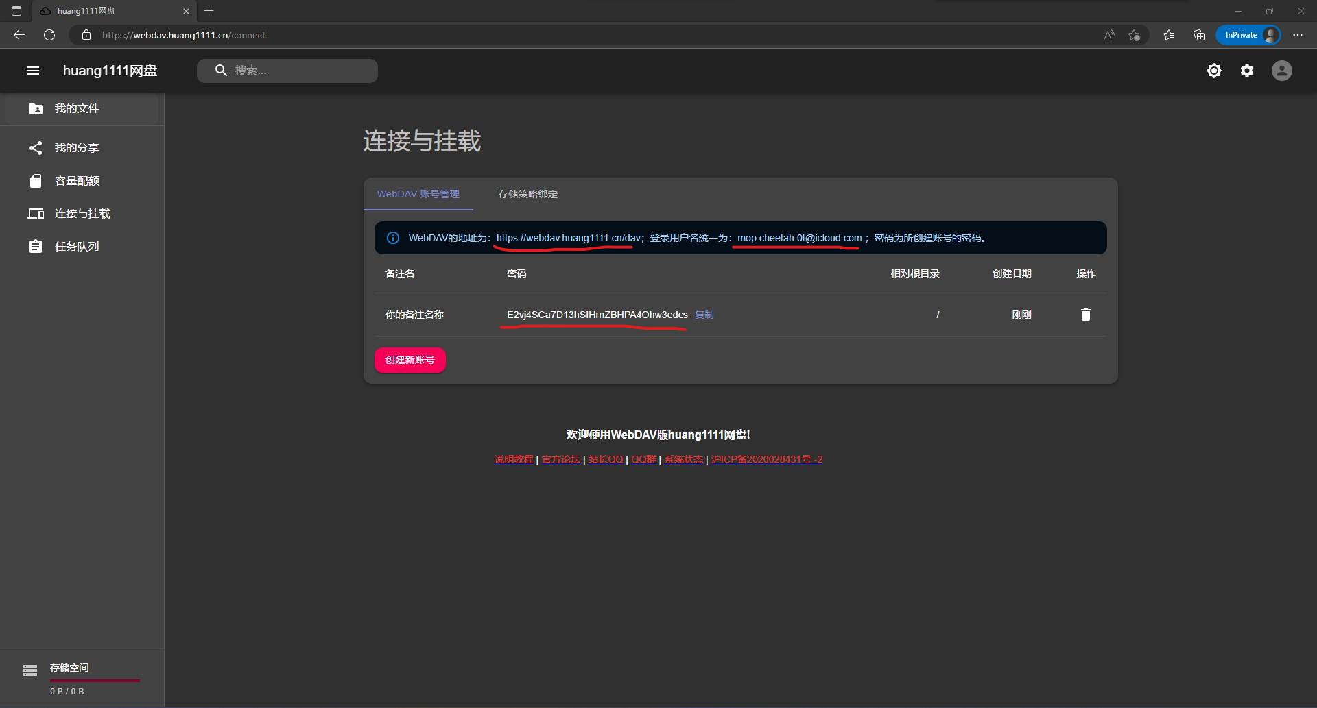④创建完成,在WebDAV挂载程序中输入你的信息连接WebDAV