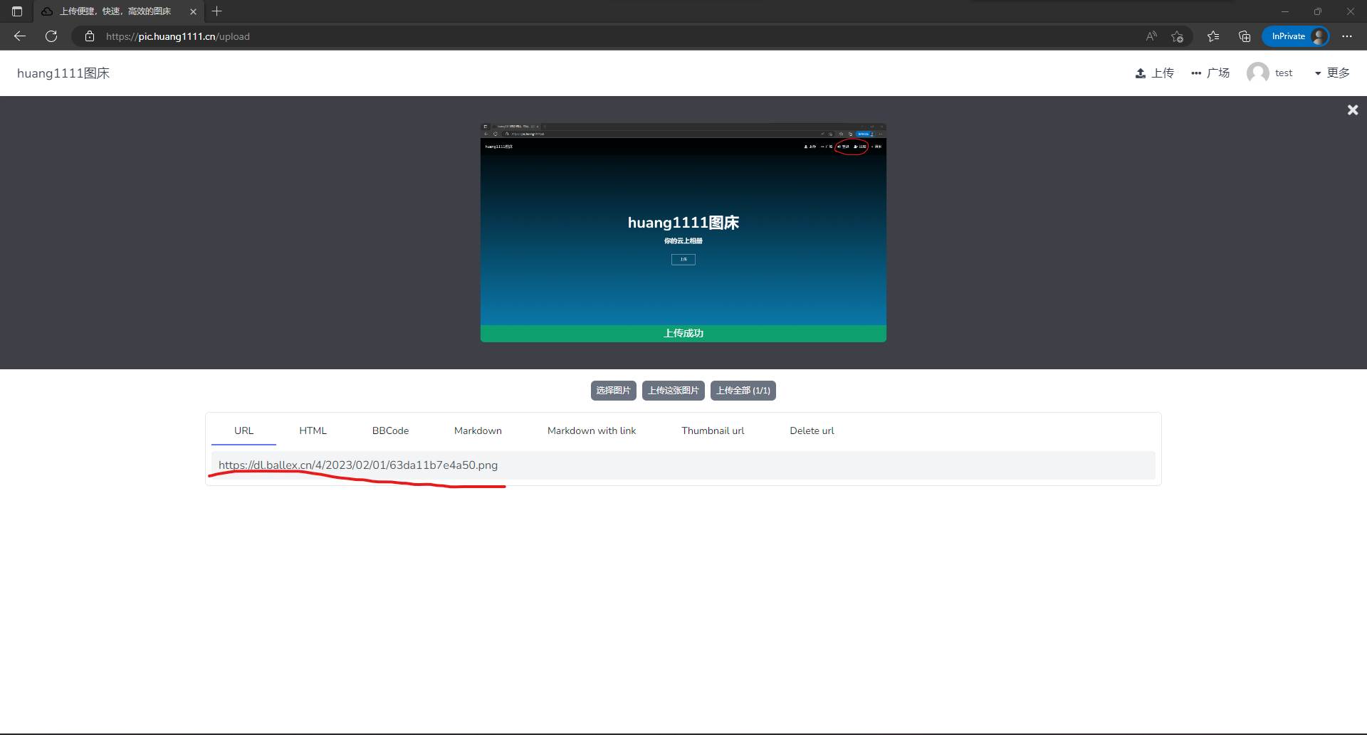 ⑥上传完成后复制图片的URL