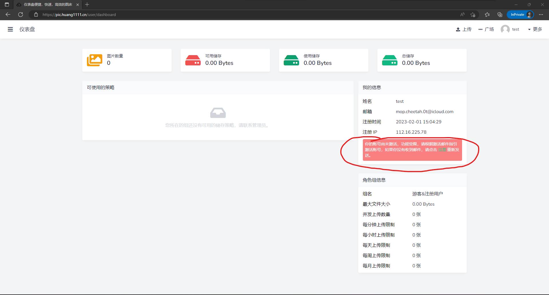 ②完成邮箱验证(如未完成将无法使用图床功能)