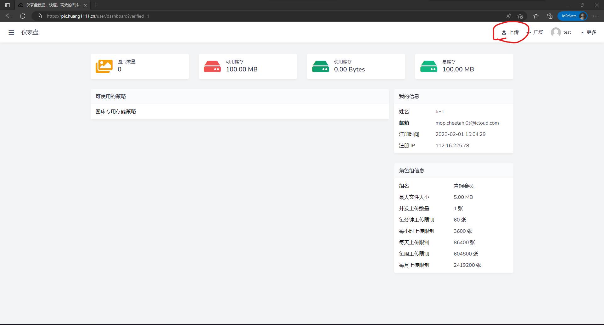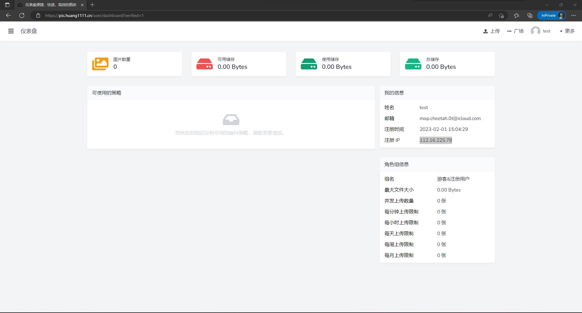 ①进入图床(https://pic.huang1111.cn),注册/登录账号
