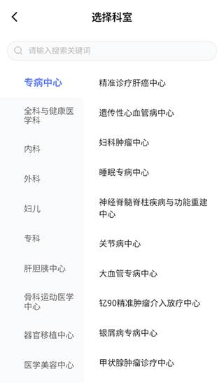 2、选择想要预约的科室;