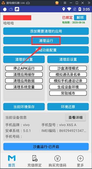 4、应用选择好后返回点击清理运行选项软件将自动清理设备
