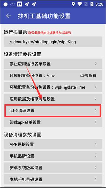 Sdcard清除设置:默认清空Sdcard下所有数据,可以定义添加白名单路径防止误删