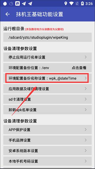 环境配置备份每次设置:可自定义环境备份名称,不能使用中文或特殊字符
