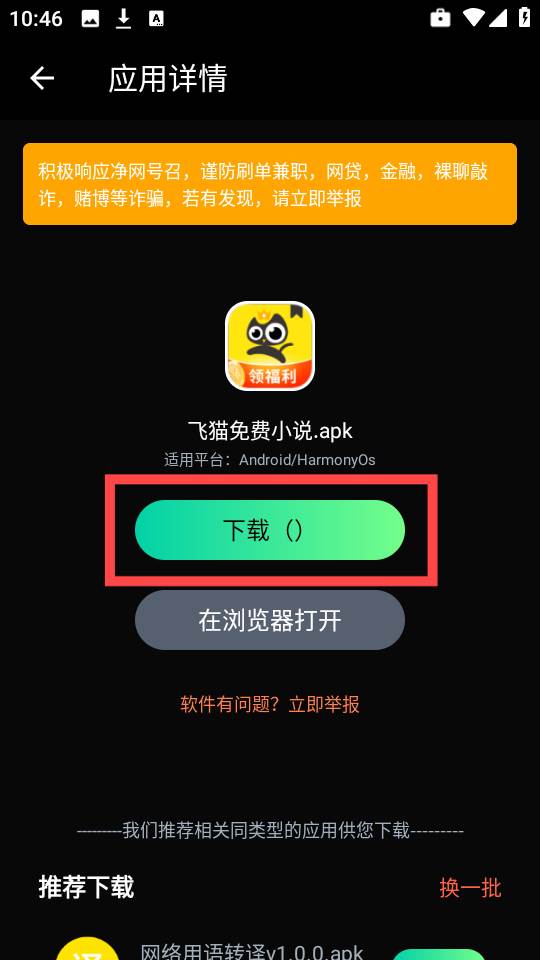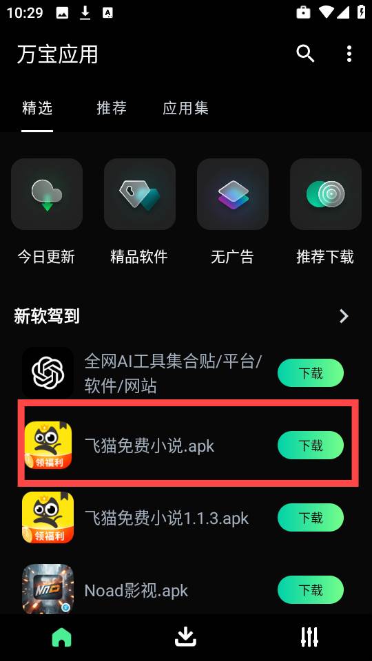 3、任意选择一款你所需要的应用,这里以“飞猫免费小说”为例。