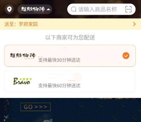 2、接着我们可以完成自己位置的定位,或者手动输入位置,完成之后便可在下方选择可配送的门店了。