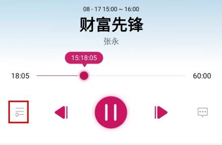 2、在进入广播频率的播放页面之后,点击左侧的按钮;