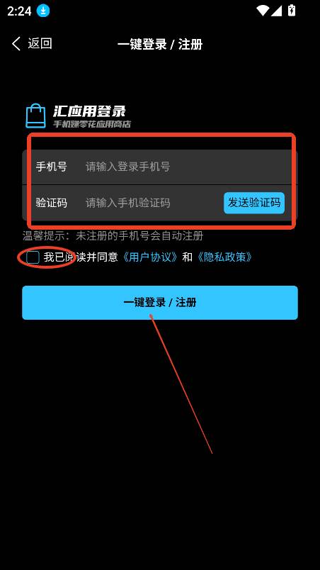输入手机号,直接就可以完成登录,新手机直接注册成为新账号