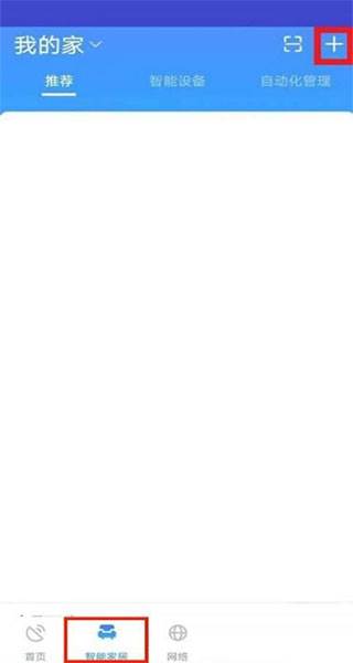 1、打开软件,在下面的菜单栏里面找到智能家居,点击进入智能家居标签页;