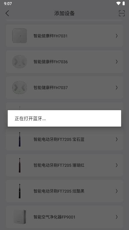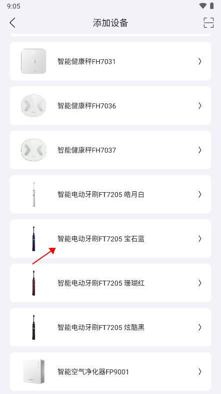 2、进入之后会看到一系列飞科的设备,根据自己买的飞科电动牙刷的颜色点击它。