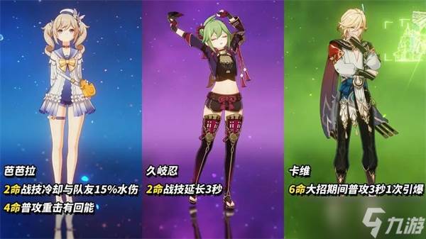 4星角色中,芭芭拉2命和4命适合站场玩法,久岐忍2命延长战技时间,卡维6命普攻引爆草原核。