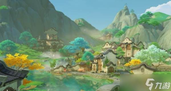 这边有瀑布,水车机关,徽系建筑,璃月风非常浓郁。不过接连两个瀑布,可见这边的地形坡度高,地势也是相当复杂的。
