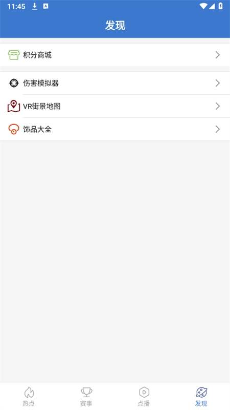 2、打开软件进入主页,在发现页面为大家提供了伤害测试器、VR街景地图等游戏辅助工具