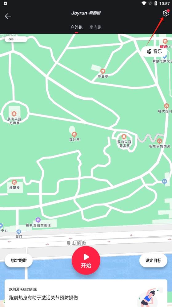 2、进入跑步记录页面,可以点击右上角的【设置】图标。