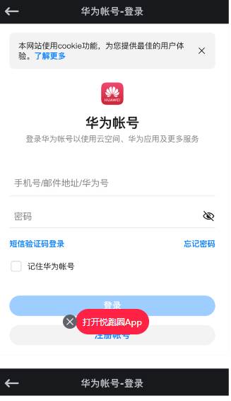 4、登陆您的华为账号,初次登陆需要获取手机验证码。