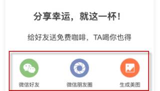 在luckin coffee软件我的,看到有一个很大广告,免费送给好友咖啡各自得一杯,点击进入。