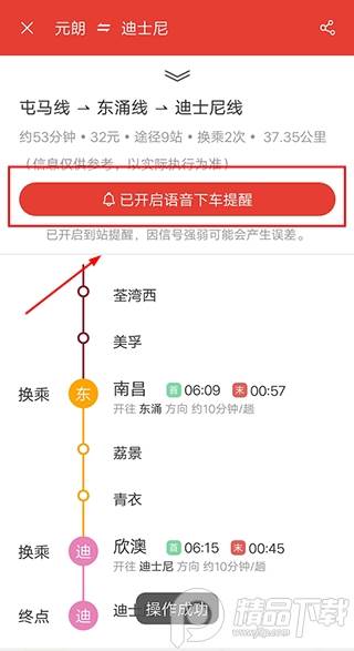 4、你也可以点击【开启到站提醒】,这样你也可以安心玩手机,不用担心坐过站。