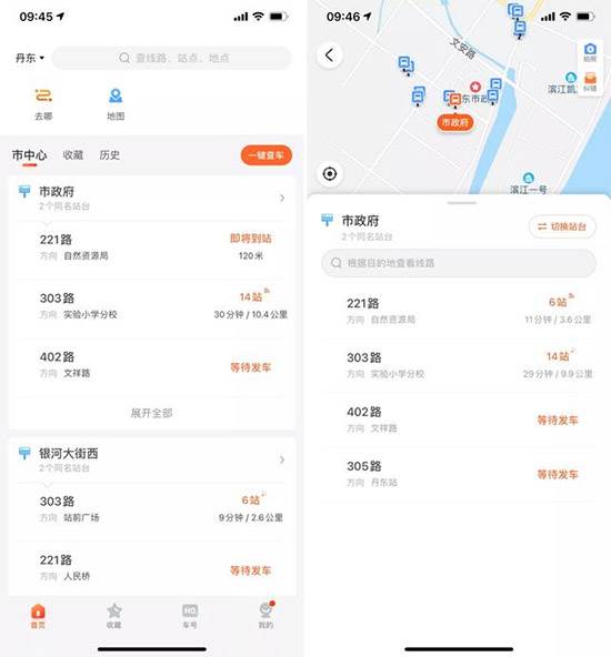站点查询是以乘车站为中心,查询经过该站的所有线路及方向列表,用户选择线路及方向后,即可查询到经过该乘车站的最近一辆车的实时信息。