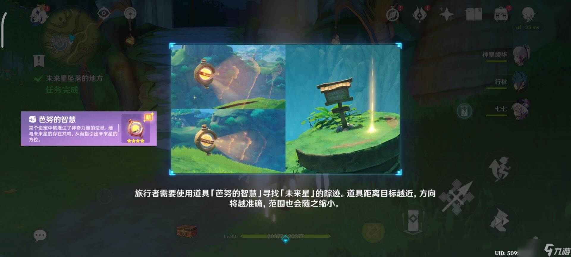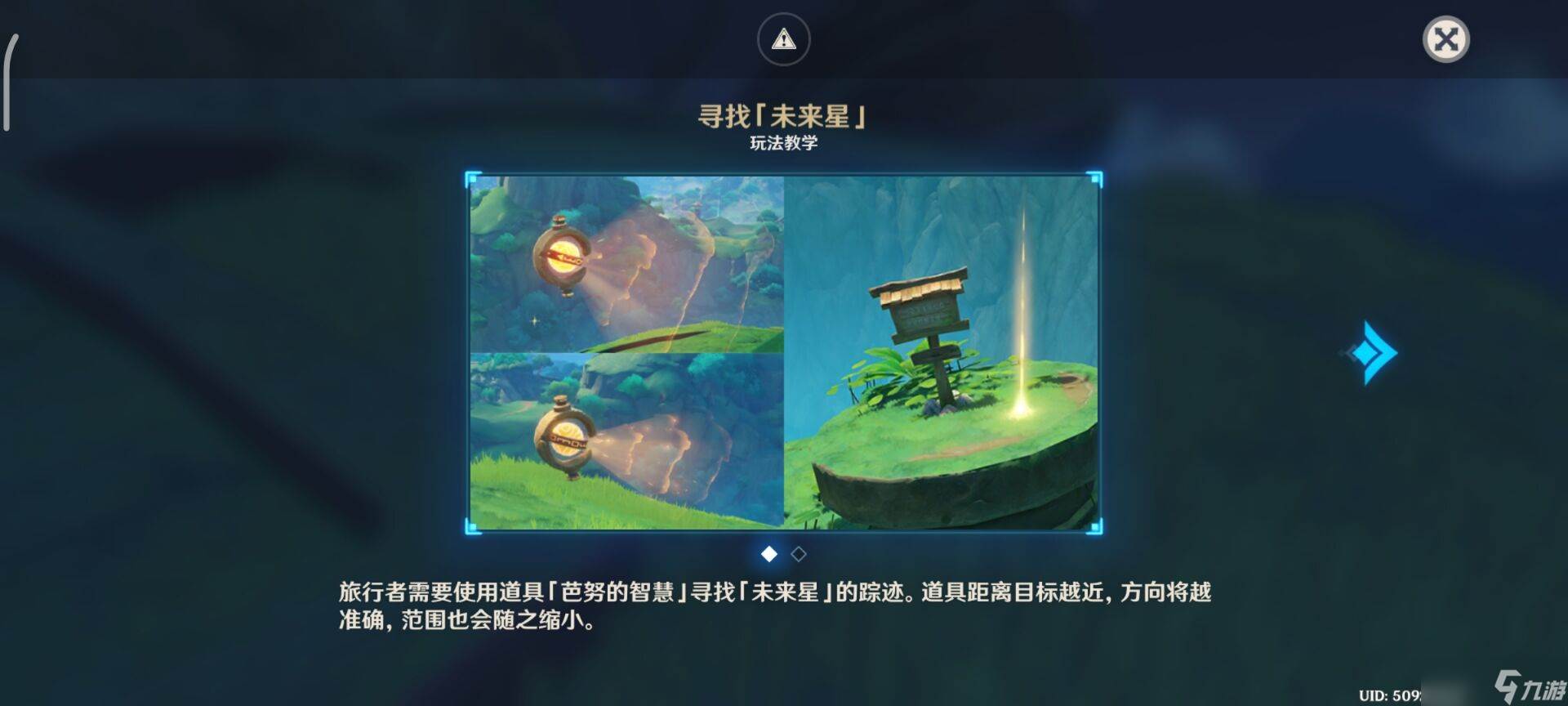 1、使用道具[芭努的智慧],在对应的位置中去寻找[未来星]的踪迹。距离越近,方向就会越准确,范围就会缩小。
