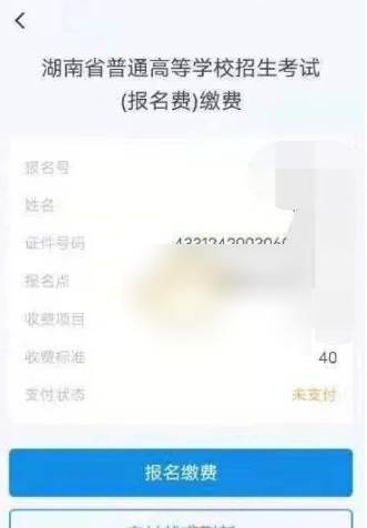 4、进入“湖南普高考试缴费系统”,确认信息正确后,点击“报名缴费”