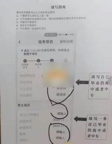14、考生简历,填写真实有效的高中学校名称、入学时间、毕业时间、职务是学生、证明人是班主任名字(一般高中、初中、小学)顺序写