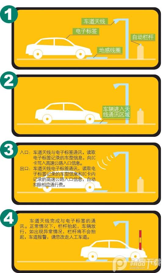 ETC(Electronic Toll Collection System),即电子不停车收费系统,车辆在通过ETC车道时,只要在车窗上装有电子标签(OBU),并插入结算IC卡,利用电子标签与车道天线进行微波通讯,无需停车就能自动完成出入口信息读写和缴费。