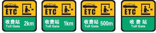 (1) ETC车道预告标志主要有以下几种: