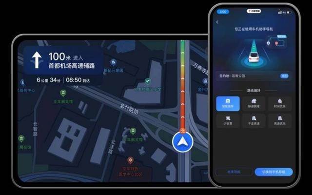 在手机上发起导航将自动同步至车机,导航状态实时同步,可通过手机操控车机,更改偏好、调整目的地、切回手机导航等操作。