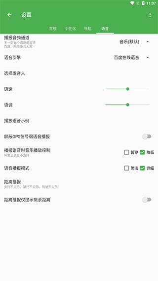 默认开启百度离在线融合语音,如果未下载离线语音包时将使用在线语音,讯飞在线语音,如需要请到设置中配置,若手机自带文字转语音TTS(中文)服务,可选择此项,并且在手机管家中配置允许该应用启动/唤醒/调用TTS程序且TTS程序能自启/被唤醒才会生效;如果手机并没有自带TTS(中文)服务,可选择讯飞在线语音合成,不过需要网络支持。推荐使用系统自带的TTS,讯飞每天只有20000次的限额,大家一起用,一般到了差不多晚上就被用完了,到时候就播报不出语音来了。使用系统自带TTS则不受限制,在线语音受网络影响,可能有延迟情况。