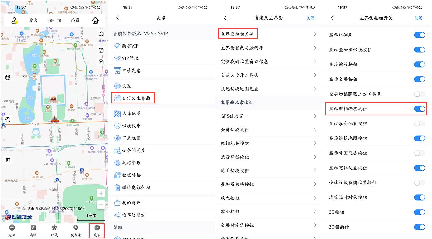 ①首先,您需要将【照相标签】按钮显示在主界面上。点击【更多】→【自定义主界面】→【主界面按钮开关】,开启【显示照相标签按钮】。