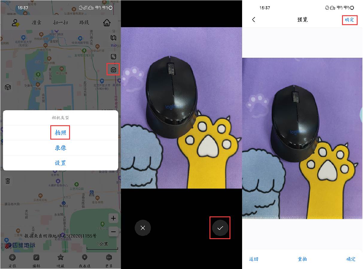 ④您刚创建的照相标签会显示在地图上,并保存在收藏夹中,照片会作为标签的附件保存在附件库中。