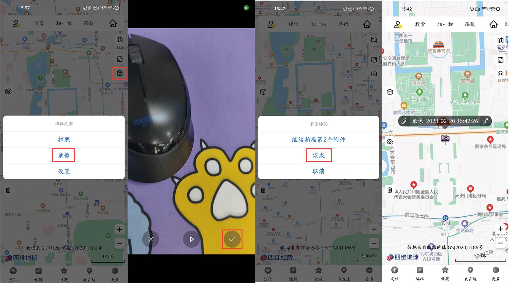 ④您刚创建的录像标签会显示在地图上,并保存在收藏夹中,视频文件会作为标签的附件保存在附件库中。