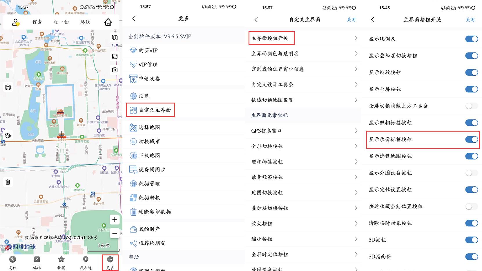 点击【更多】→【自定义主界面】→【主界面按钮开关】,开启【快速收藏当前位置按钮】,点击【关闭】。