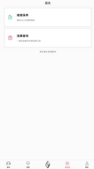 4、点开车生活,有维修保养、违章查询等功能;