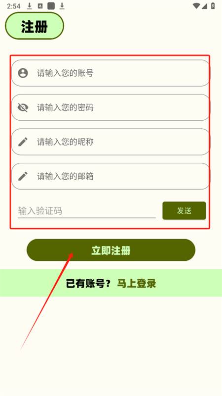3、然后输入您的账号、密码、邮箱等信息,获取验证码后,点击立即注册即可