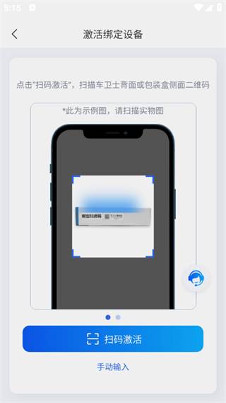 3、随后手动扫描车卫士二维码或者手动输入条形码即可绑定