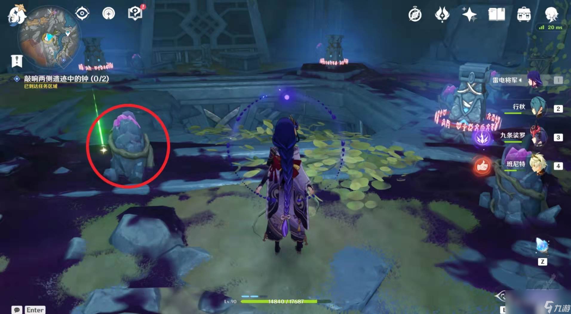 使用纯光清除黑石,黑石被全部清除后会出现怪物,击败后敲钟即可(使用攻击击打钟)。
