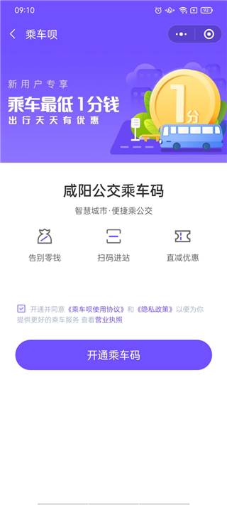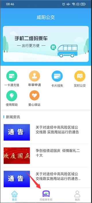 2、打开出行立即开通咸阳公交乘车码;