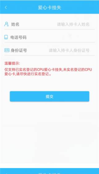 支持爱心卡、学生卡在线挂失,挂失成功次日,卡片将无法使用,请及时进行换卡操作,如下图所示: