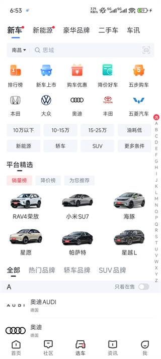 【快速选车】丰富的车型库,众多品牌热销车型,新车上市,总有一款适合你