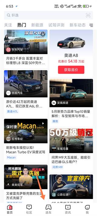 1、打开买车宝典App,点击选车板块