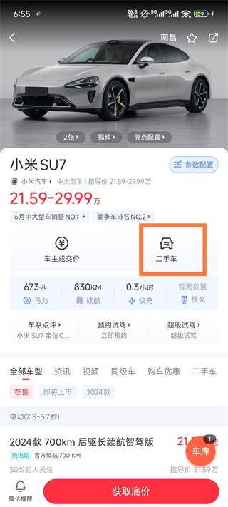 3、搜索成功后,点击询问底价或者点击二手车去购买