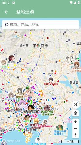 1、可以根据地点、作品、地标来寻找相应的圣地