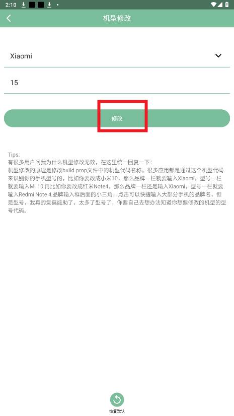 选择品牌,输入机型,点击修改
