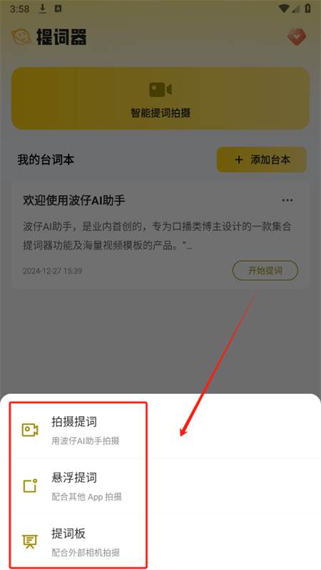 5、在提词器页面,还提供了拍摄提词、悬浮提词、提词板等功能可以使用