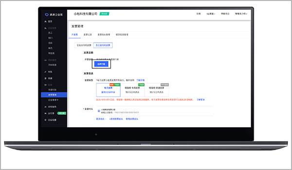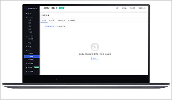 1、开发票前需要先完成企业资质认证,请前往左侧边栏“发票管理”,点击“去认证”。